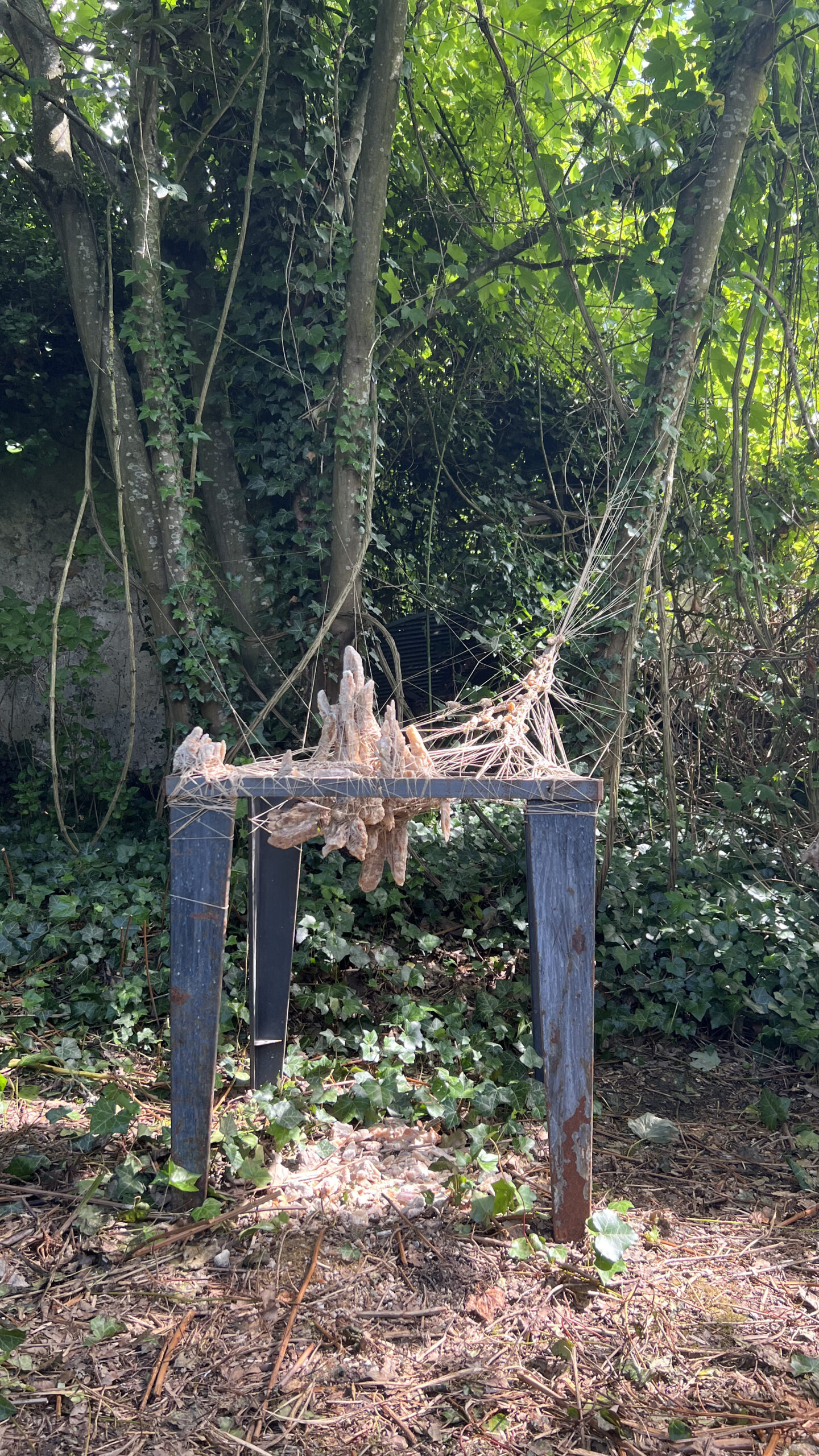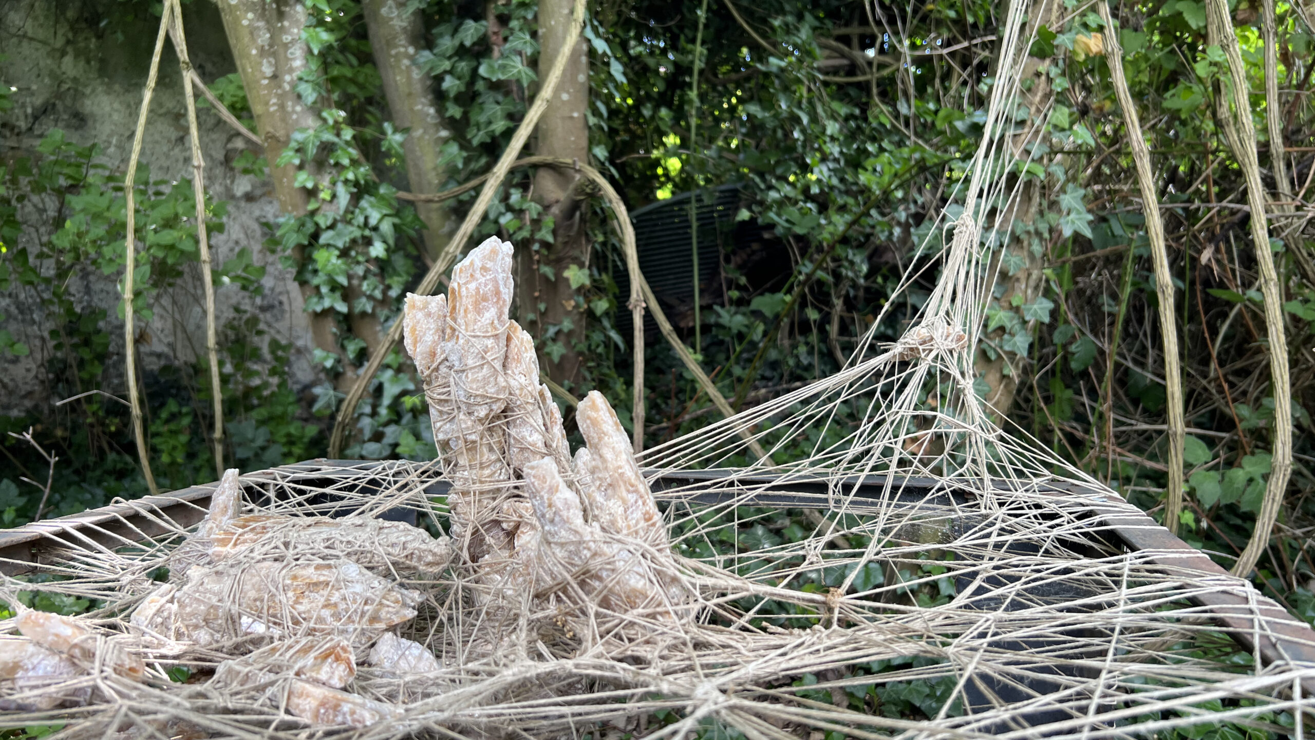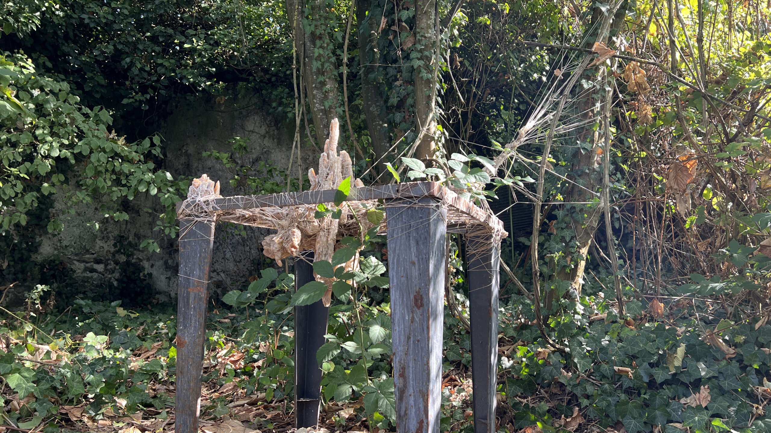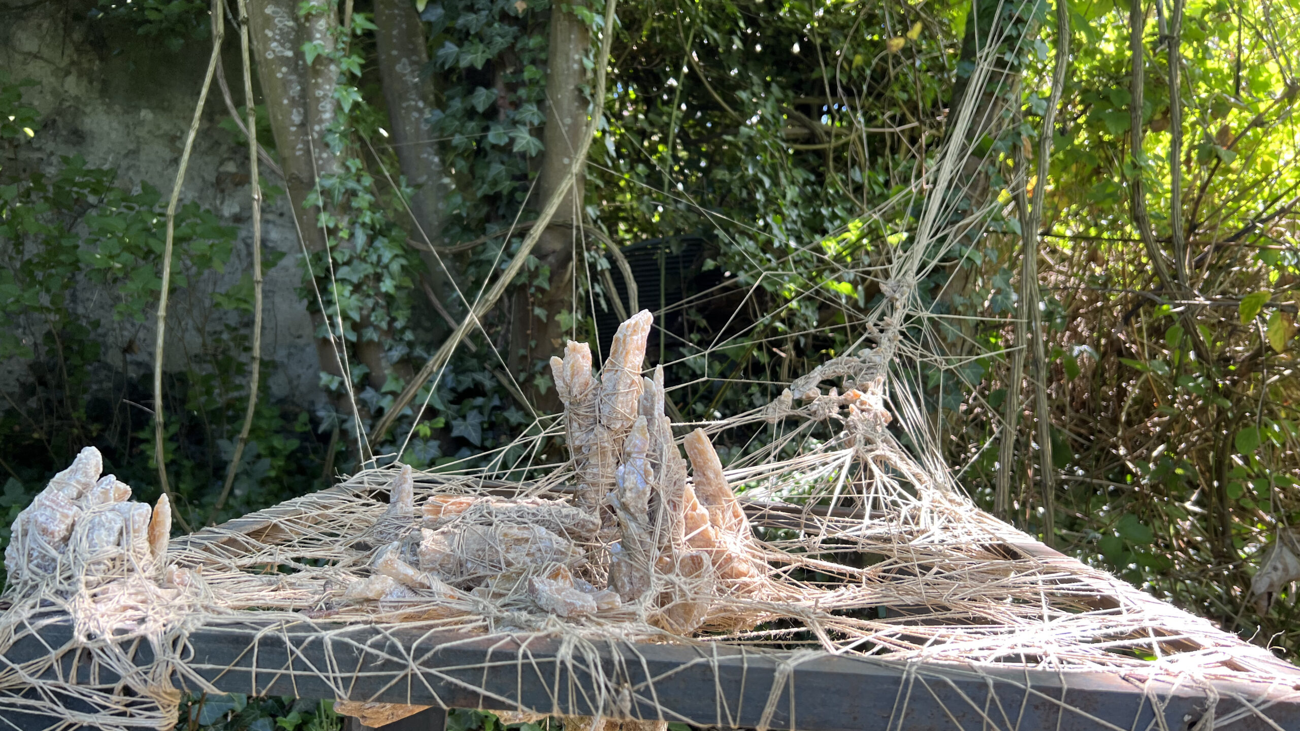 2023Land art aux Murs à Pêchesmatière : fil et gypse sur cadre metal 95 x 70 x 65 cm