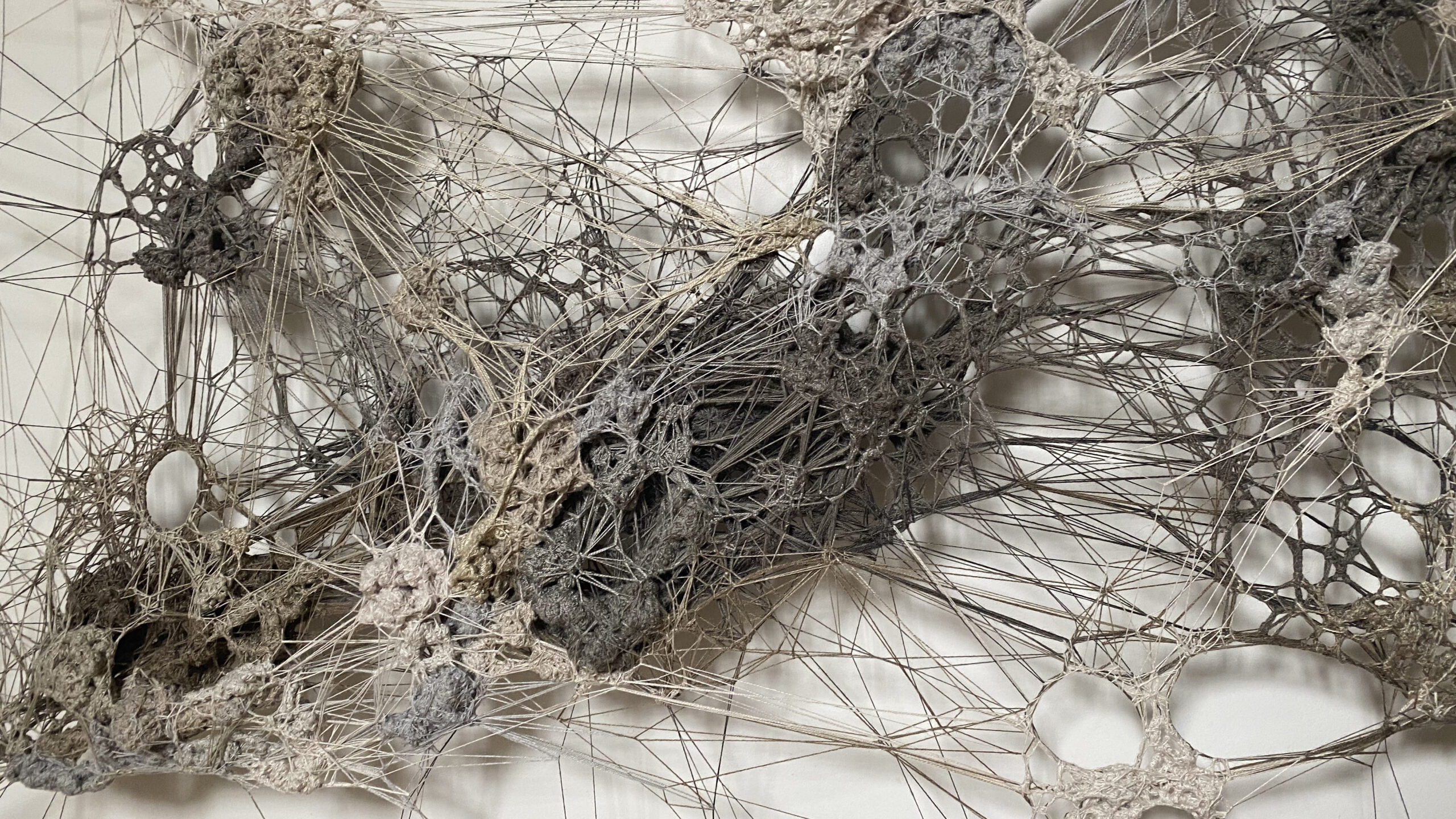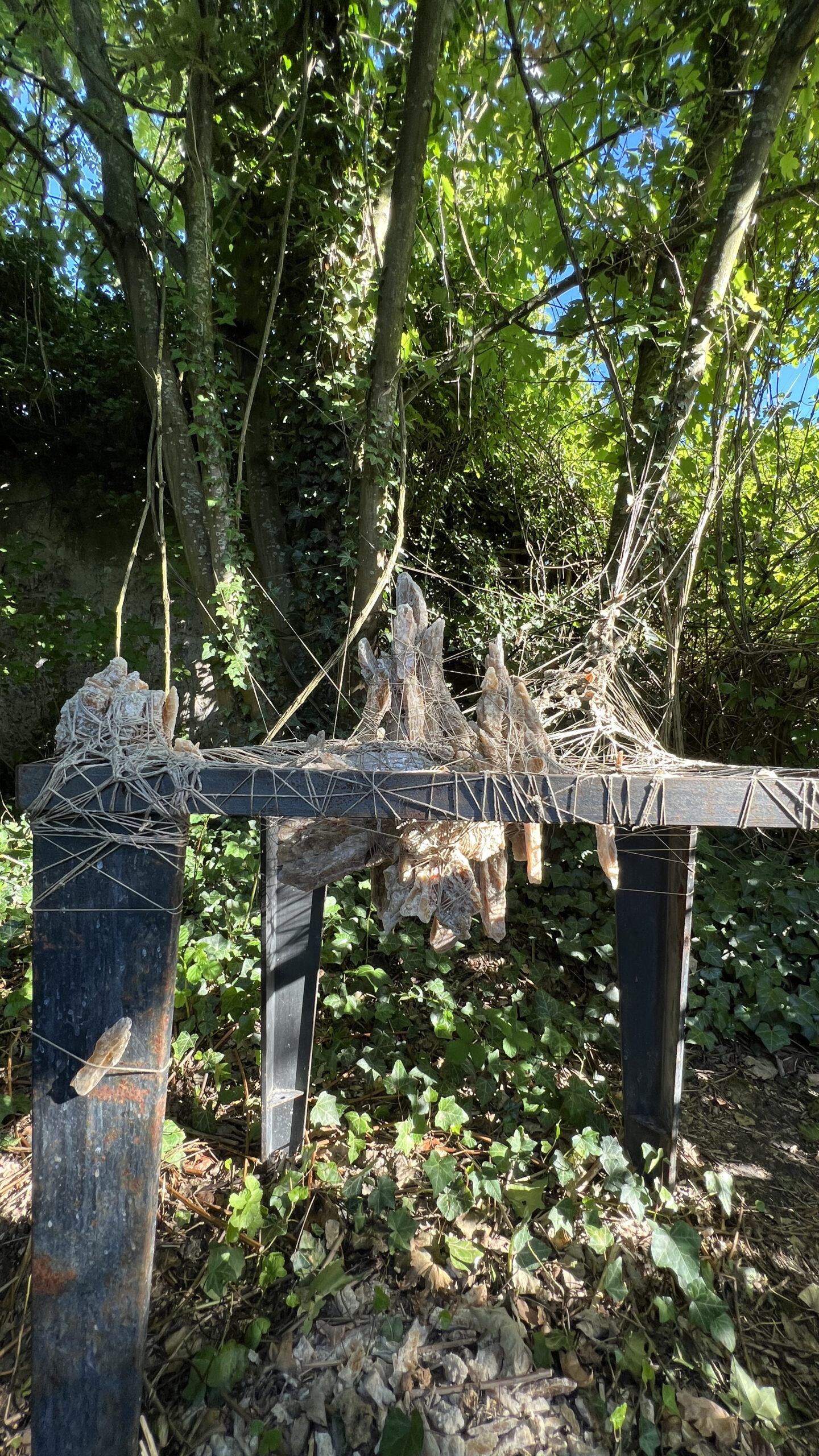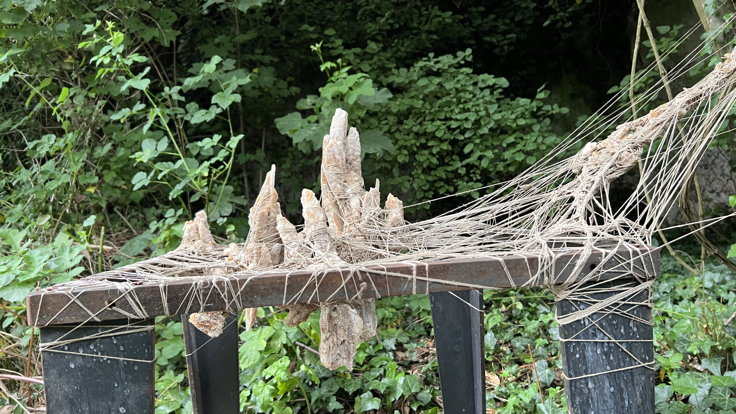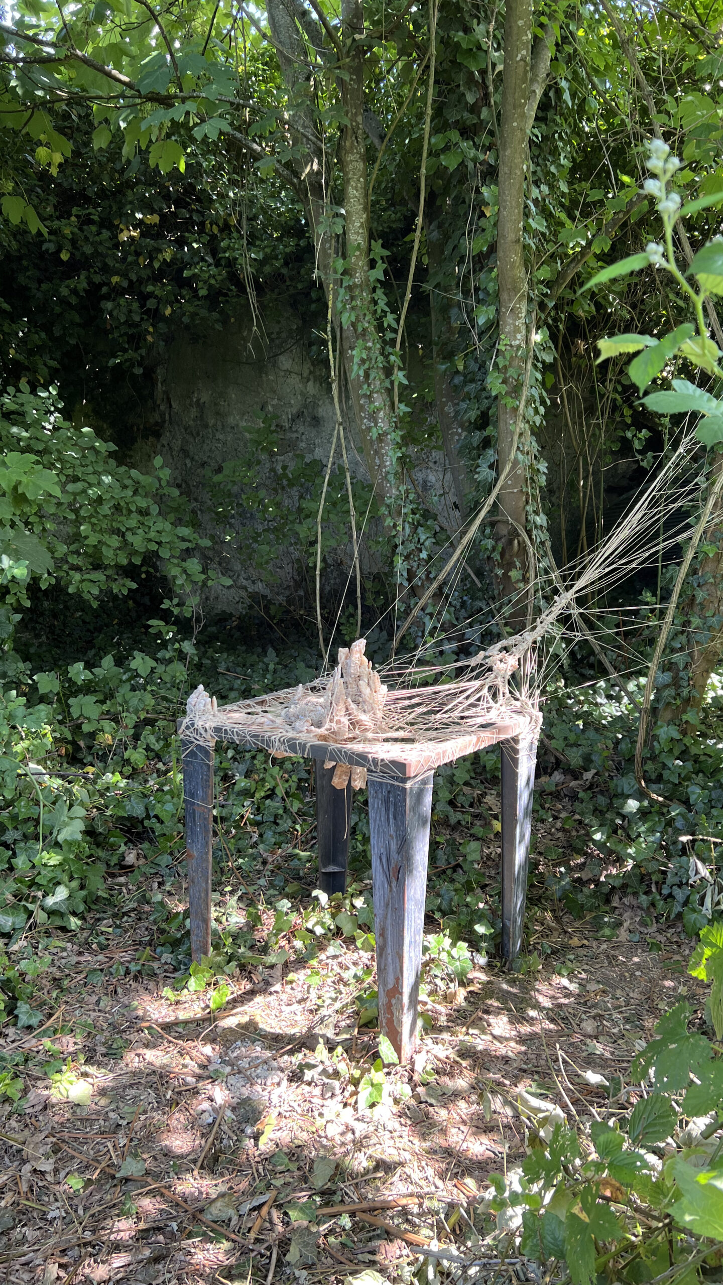 2023Land art aux Murs à Pêchesmatière : fil et gypse sur cadre metal 95 x 70 x 65 cm
