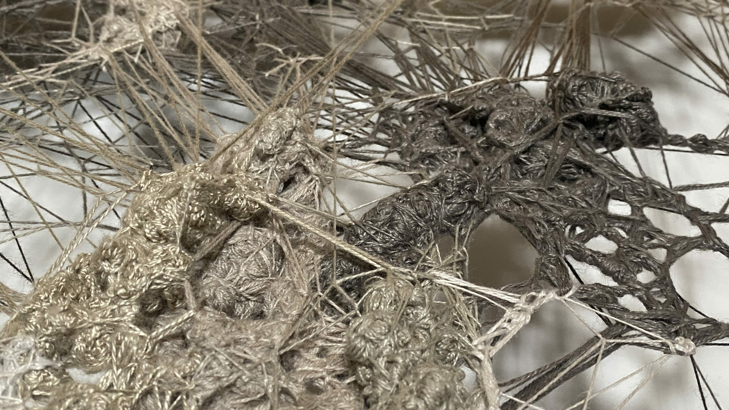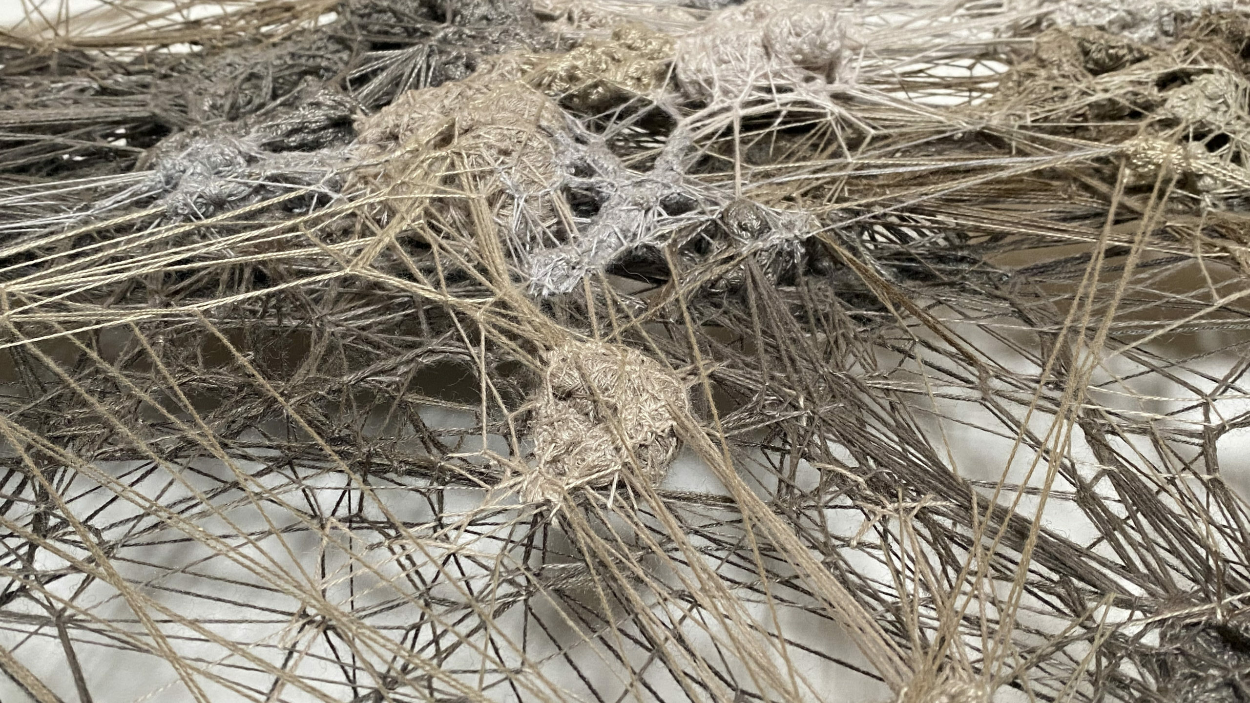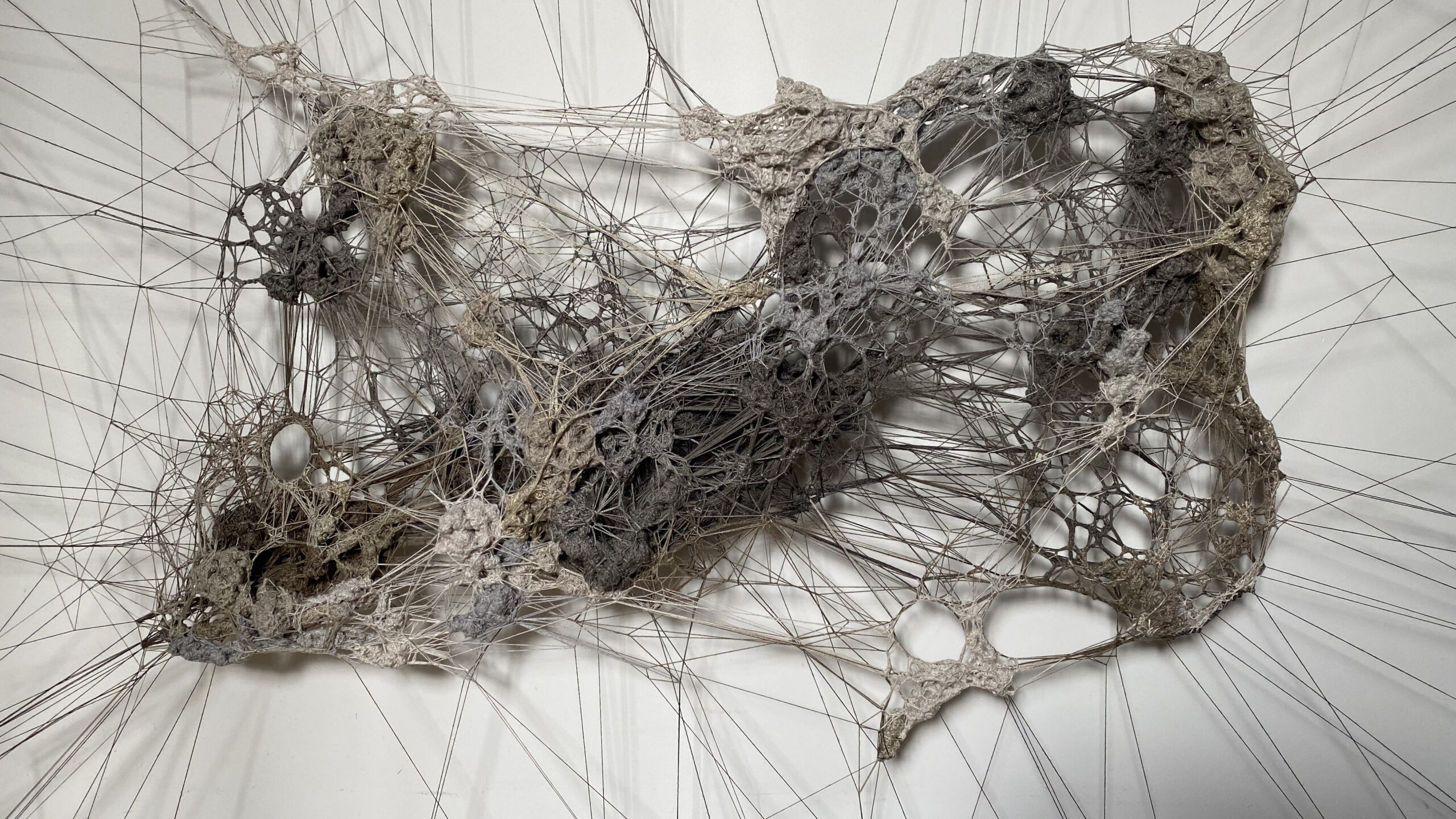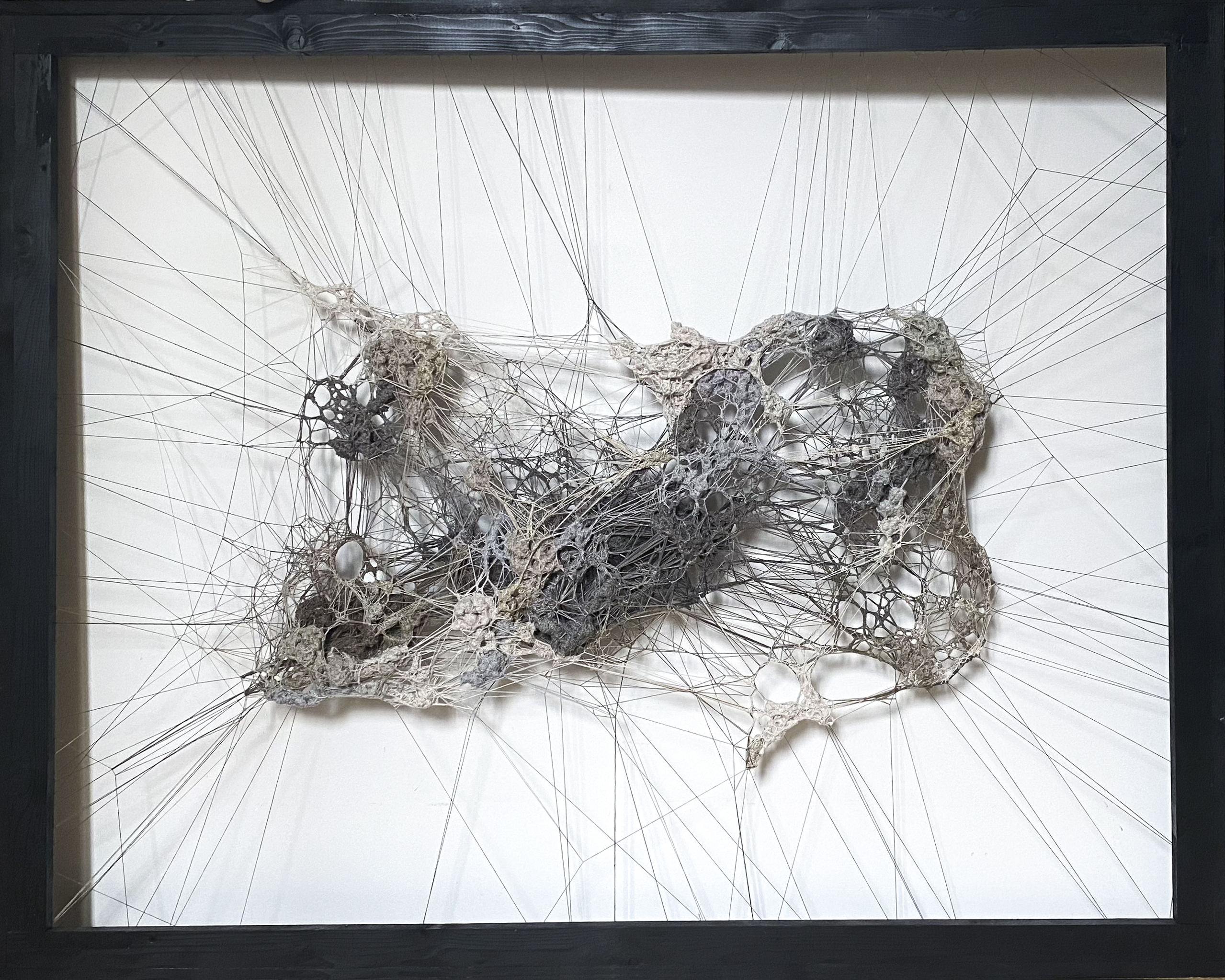 2023Land art aux Murs à Pêchesmatière : fil et gypse sur cadre metal 95 x 70 x 65 cm