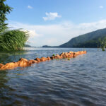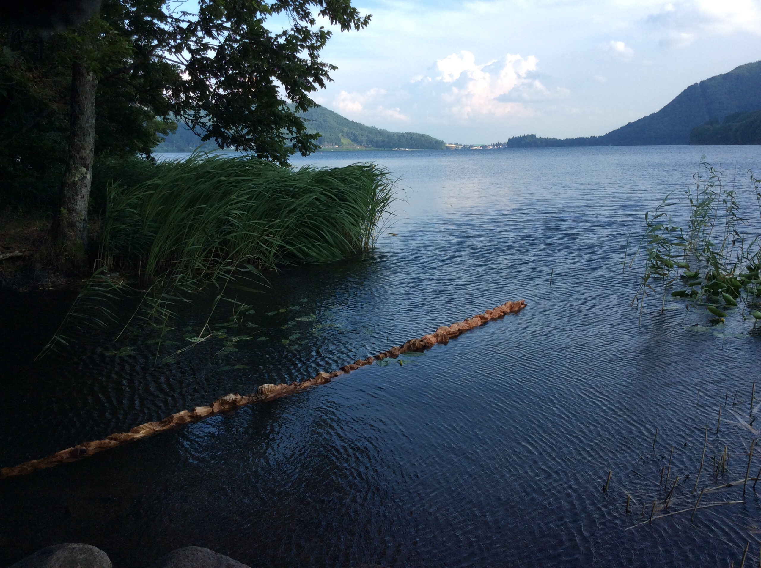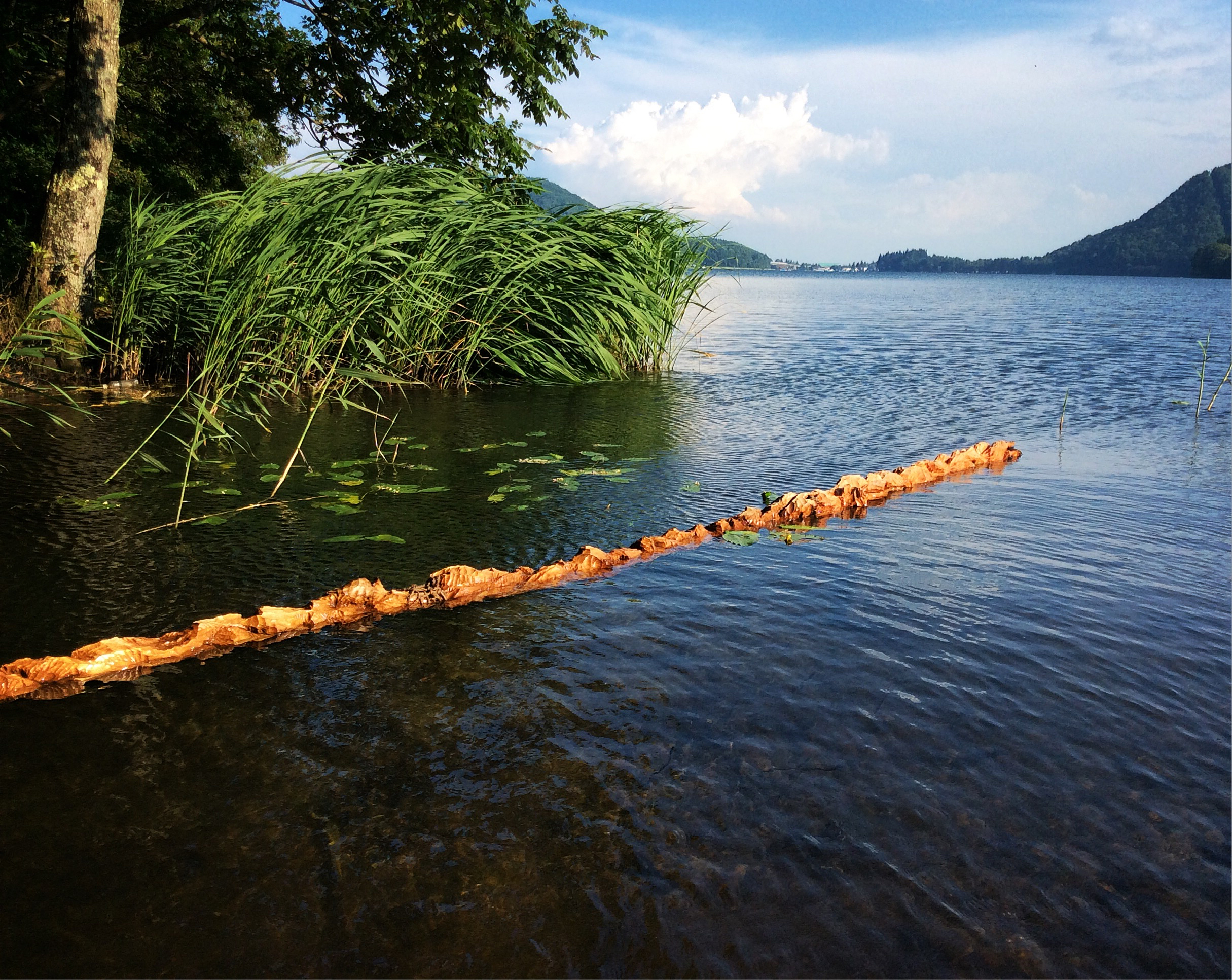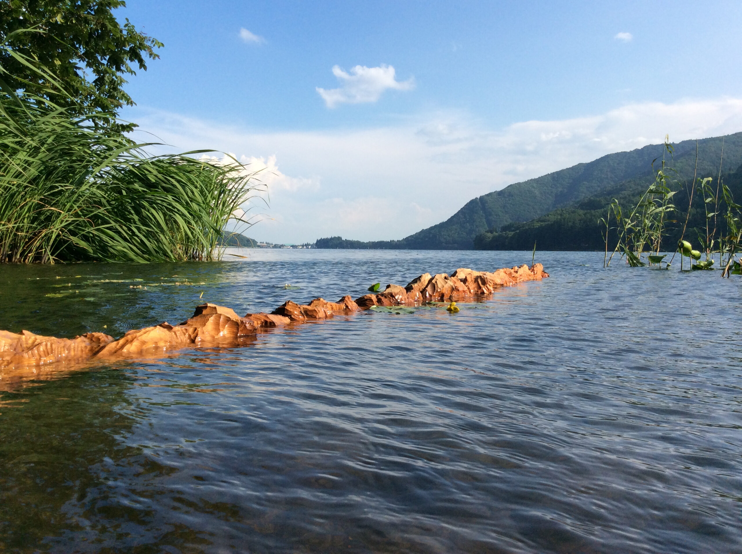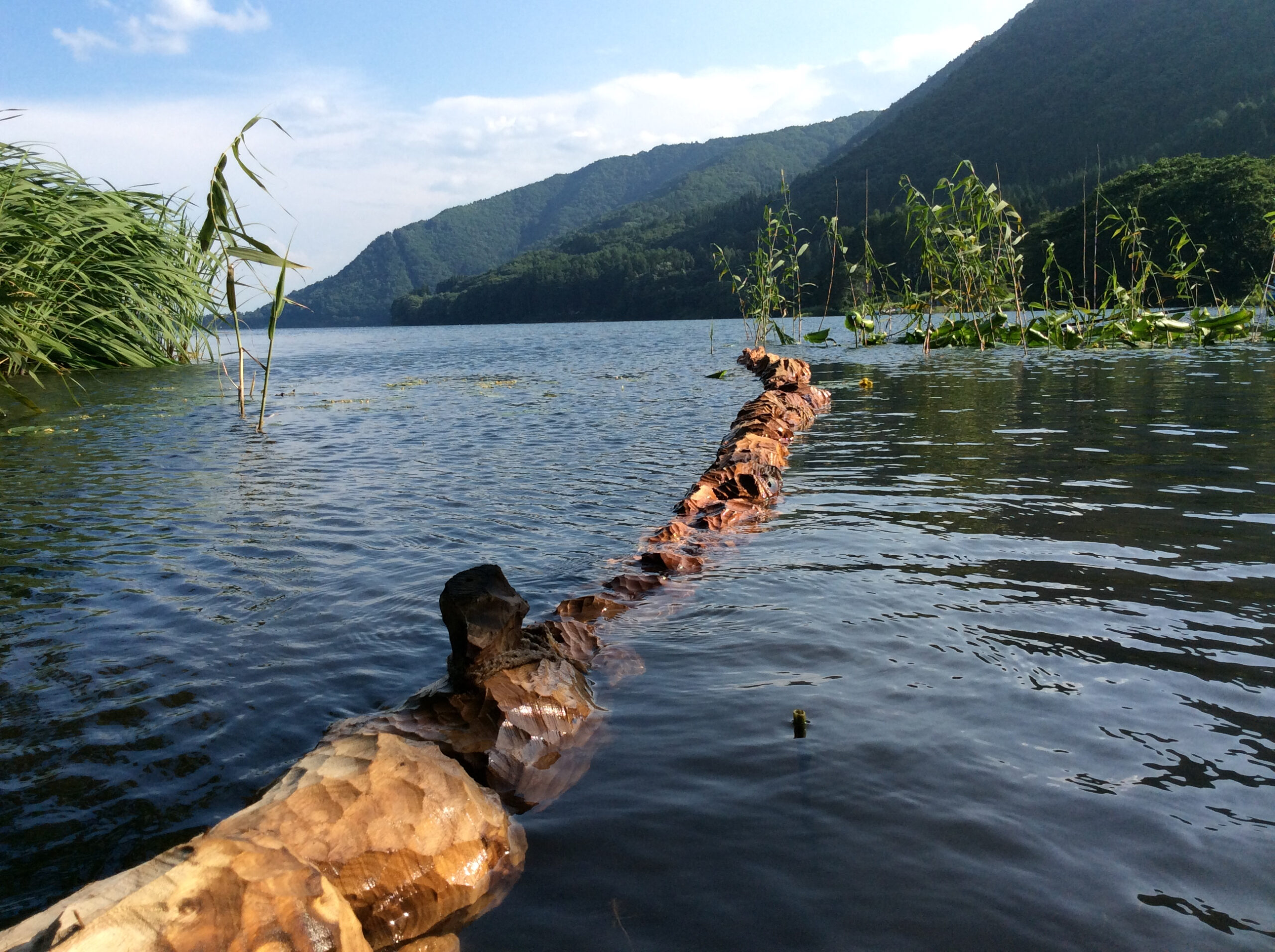 2016sculpture réalisée pour Primitive Sense et placée dans le Lac KizakiShinano Omachi, Japonbois (chêne, noyer, mélèze du Japon)